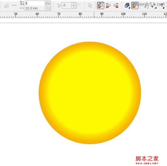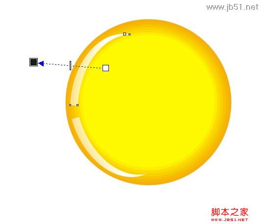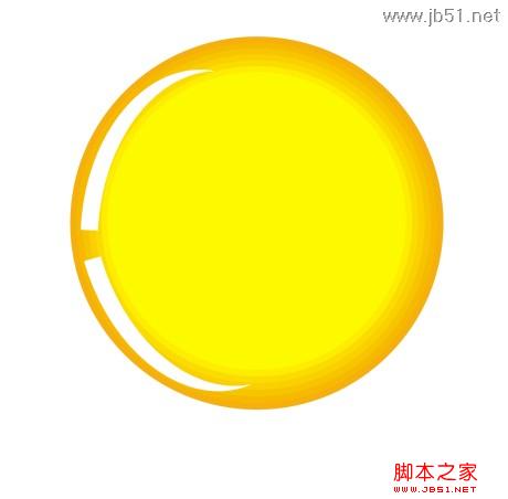 set6:绘制一个椭圆形,填充为白色,去除轮廓线,放入图形中,选择交互式透明,在白色椭圆上部从上方至下方拖曳光标,然后全选复制,放入大圆中。再绘制一个椭圆,单击属性栏中的弧度按钮,椭圆形变弧形,选择形状工具,分别拖曳两端的节点到适当的位置,调整为需要的图形。