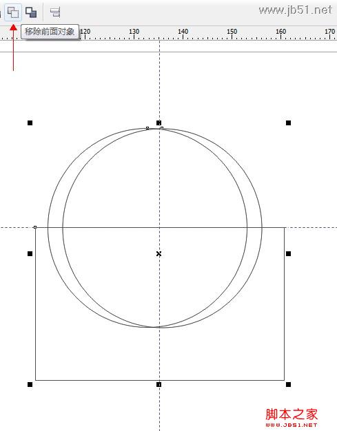 set3: 绘制两个椭圆相交,再绘制一个矩形与其相交,用圈选的方法全选,单击属性栏中的后减前按钮。