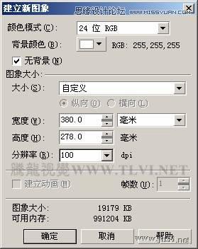 (1)运行Corel PHOTO-PAINT,在欢迎界面中单击“新图象”图标,打开“建立新图象”对话框,参照图9-4所示设置对话框,建立一个新图像。