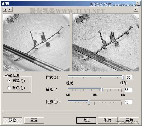 图9-10 设置“素描画”对话框