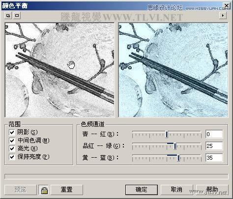 图9-21 设置“颜色平衡”对话框