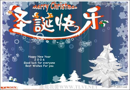 实例通过笔画变形来使文字达到美观的、具有装饰性的效果。同时与麋鹿角等具有圣诞代表性的饰物相呼应,更增添了节日的气氛,如图6-30所示,为本实例的完成效果。