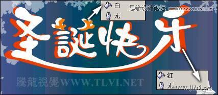 (15)选择两个矩形,单击属性栏中的“修剪”按钮,将矩形修剪,并删除上面矩形,接着设置修剪后图形的轮廓色为无,填充色为白色。然后再添加其他相关文字信息,完成本实例的制作,如图6-58所示。读者可打开本书附带光盘\Chapter-06\“圣诞字体变形.cdr”文件进行查阅。