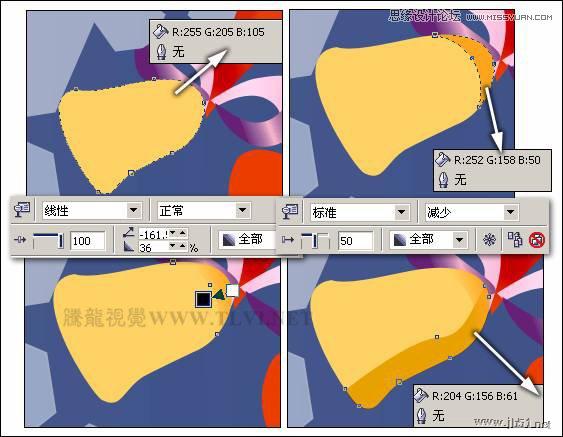 (2)使用工具箱中的“矩形”工具,在页面中绘制矩形,并使用“交互式填充”工具,为矩形填充渐变色,然后设置该矩形的轮廓色为无,如图6-32所示。
