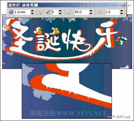 提示:使用“涂抹笔刷”工具,对文字图形进行涂抹,绘制出雪融化后结冰的效果。