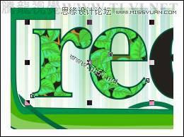 本实例制作的绿叶字效有点象形字的意味,但这种象形不是字体的象形,而是在字体的笔画上绘制了绿叶,从而达到望文生义的效果。单调、呆板的文字经过创造性地设计,构成了绝妙的视觉展现,增加了视觉传播的意义。图6-89为本实例的完成效果。