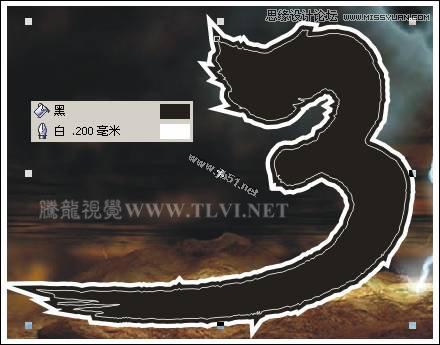 (3)使用工具箱中的“文本”工具,在页面中创建字母“3”,然后按下键,将文字转换为曲线对象,使用“形状”工具,对文字的形状进行调整,如图6-118所示。