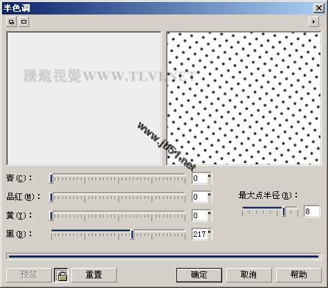 提示:通过对图像添加"半色调"滤镜效果,制作出网点的图像效果。