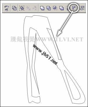 (13)使用"贝塞尔"工具,参照图5-15所示在页面空白处裤子图形上绘制不规则图形,然后框选裤子和不规则图形,单击属性栏中的"后减前"按钮,对图形进行修剪。