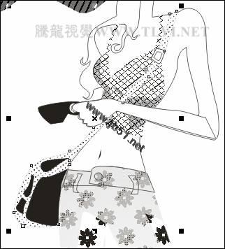 (5)接下来选择上衣图形,参照以上填充图案方法,为上衣图形填充图案,并设置上衣图形的轮廓色为无,然后将手臂填充为白色,如图5-7所示。