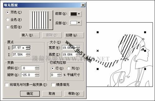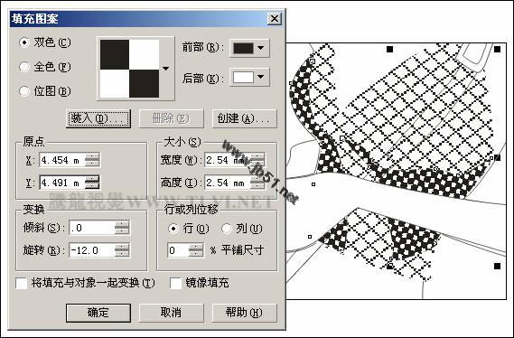 (3)选择工具箱中的"填充"工具,在展开的工具条中单击"图案填充对话框"按钮,打开"填充图案"对话框,参照图5-5所示设置对话框,为图形填充图案,然后取消对该图形的轮廓填充。