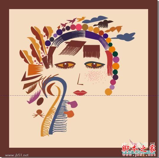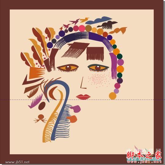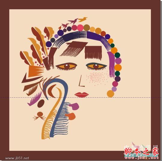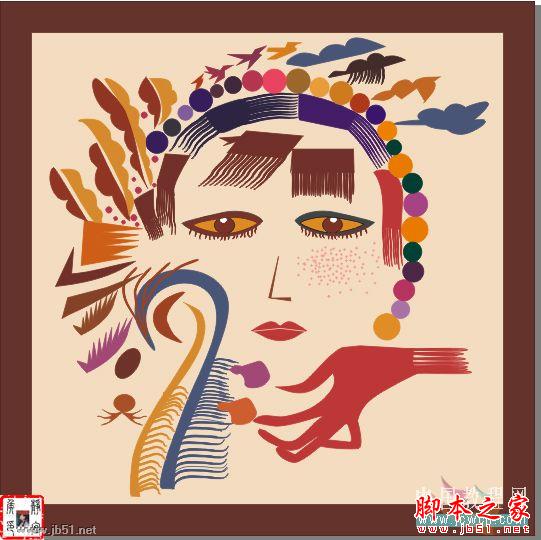用CorelDRAW鼠绘一幅人物饰画,画面运用各种不同的装饰图形组合而成,充分体现装饰画的形式美。画面中点、线、面的合理构成达到了较强的装饰性效果,在制作装饰画时,颜色搭配起决定性因素。大家应着重把握哦。