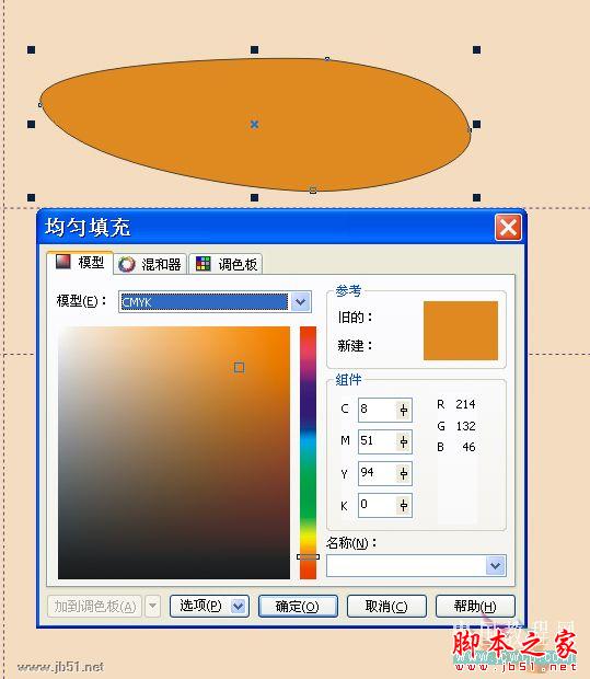 用“椭圆工具”绘制一个椭圆形,填充颜色,如图25B所示: