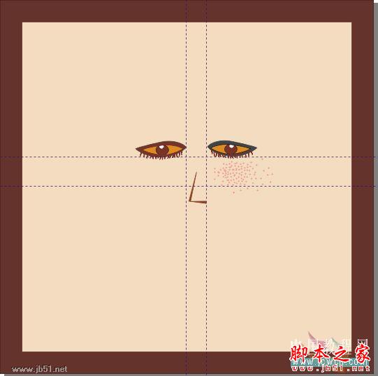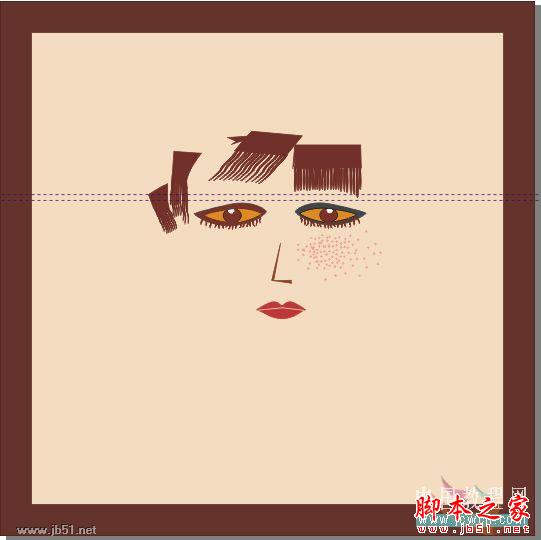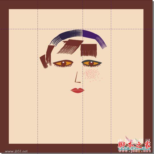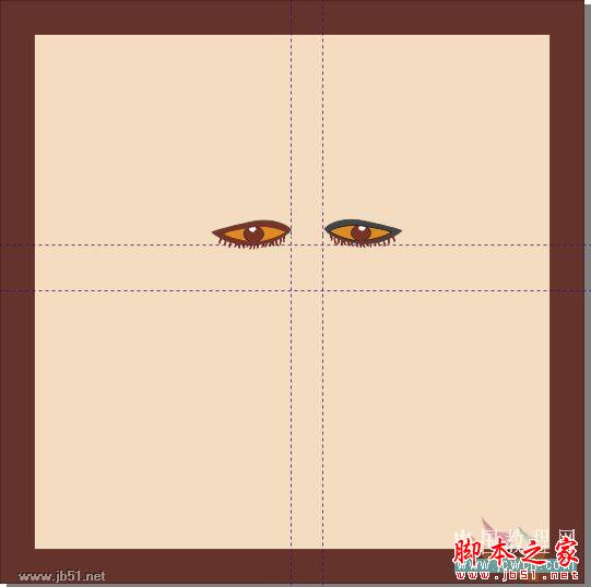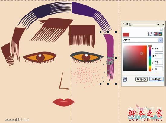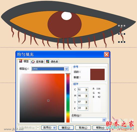 10、将5-9步骤中创建好的右眼图形复制一份,作为左眼图形,全部选择后,按“镜像”按钮,将眼眶填充颜色为(C:51;M:98;Y:97;K:10),其轮廓线也进行相应的填充,如图10A所示: