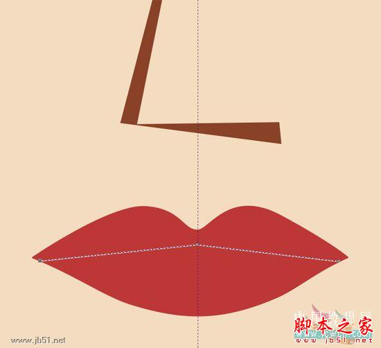 13、单击“钢笔工具”,创建嘴唇的图形轮廓,运用“钢笔工具”创建的图形需结合“形状工具”,在所需调节的点上单击鼠标右键选择“曲线”(或称为“反转曲线”)命令,进行圆滑调节(请适当拉标尺线进行定位绘画),如图13A所示: