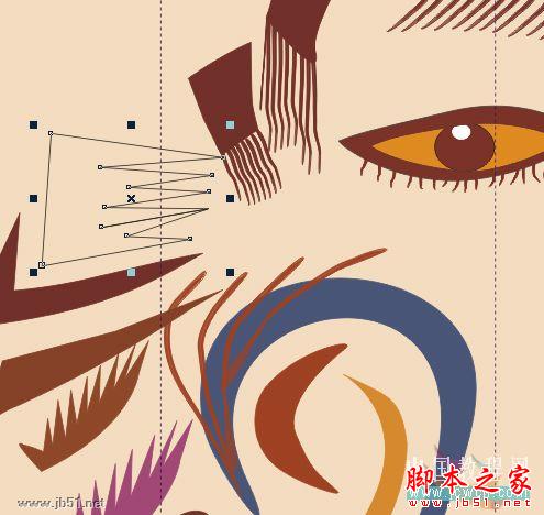 25、单击“钢笔工具”,创建头的大概轮廓,单击“形状工具”,在所需调节的点上右击选择“曲线”(或称为“反转曲线”)命令,进行圆滑调节。然后,选择调色板中的相应颜色,填充图形,如图25A所示: