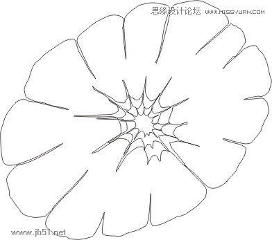 5、画好橙子的外皮就要画它的里面了,先把橙子的里面轮廓画出来(最里面画一个就可以了,放小就能用)