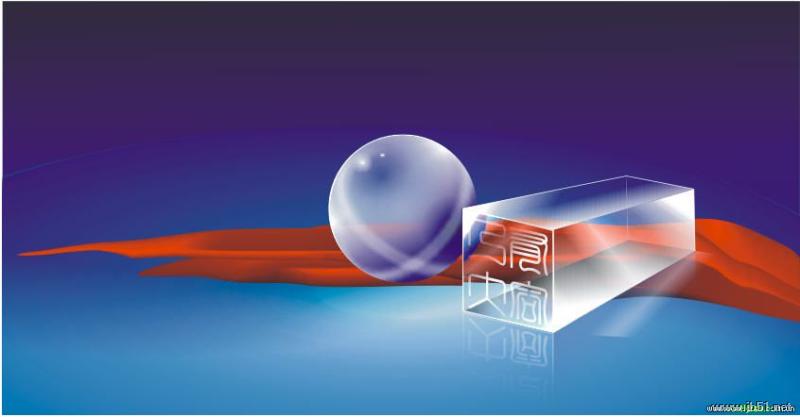 25、在水晶印章侧面下方绘制一个四方形,填充为深蓝色,无轮廓,再为其添加透明效果,这样印章的侧面倒影就形成了。图25
