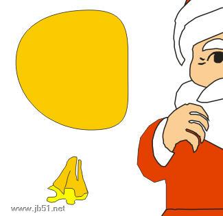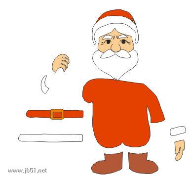 (4)依次绘出圣诞老人的衣服(红色填充)、袖子(白色填充)、手(褐色填充)以及袜子(深红色填充)。另外还要绘出圣诞老人的裤带。如图05所示。然后调整每件物品的前后顺序并拼成如图06所示。