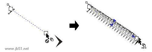 电脑键盘上的按键用“交互式调和工具”完成:先建立两个基本图形,分别作为调和的开始对象和结束对象,然后选择工具栏中的“交互式调和工具”,在其中一个图形上,按住鼠标左键并拖动到另一个对象,完成后,调整调和的数目即可,如图10所示。
