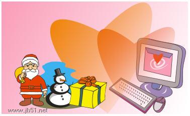 圣诞卡,圣诞老人的图案当然少不了,而且是一个扛了一大袋礼物的那种。为了表达自己常在电脑前思念她,电脑也是少不了的。主角已经敲定,其它的配角如图案填充、辅助线条、辅助图案,就等最后来根据需要来制作它了。