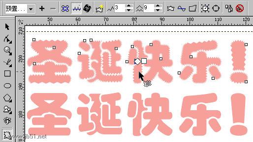 (1)用“文本工具”输入“圣诞快乐”,设置字体为琥珀体,并将文字转换成曲线。