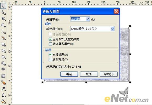 3.执行“位图”---“转换为位图”命令.在弹出的提示框中设置“分辨率”为300dpi.得到图像的颜色就增强了,如图: