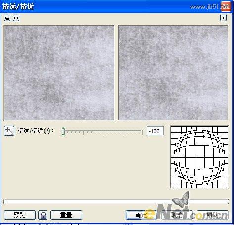 4.执行“位图”---“三位效果”---“挤远/挤近”命令,在打开的对话框中设置相关参数,如图的到的图像中间就形成可漩涡状态。