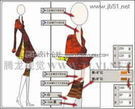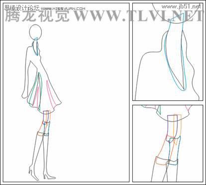 (7)接下来再为女孩儿下身衣服图形上的褶皱图形填充与下身图形相同的纹理效果,然后使用