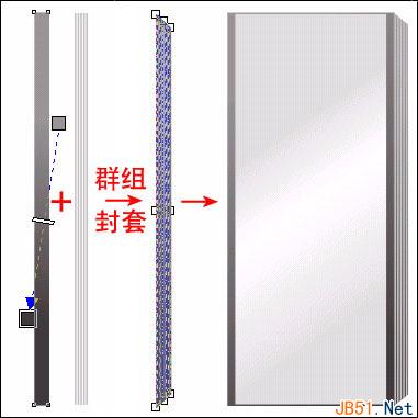 ④、群组后,利用形状封套工具把柱体的下部修整成具有曲线面的形状。