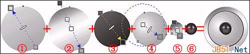 ⑥、一个纯黑色的圆,要注意其与上面5个圆形物体的大小关系;