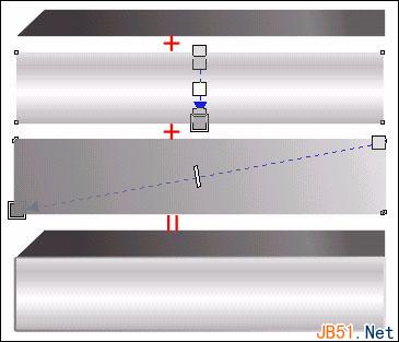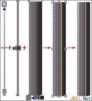②、利用一个两侧不对称深灰,中间白色的窄高长条,作为柱体的高光部分;