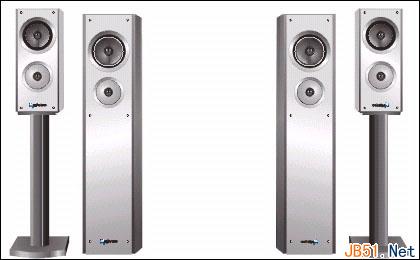 在利用音箱下部的那只喇叭转化出中间的一个,同样是利用颜色过度变为环行模式;喇叭三