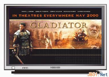 这里选用了电影《勇敢的心》的一张海报。可以用PhotoShop预先处理一下,让图片具有淡淡的电视屏幕的抽线模式,同时更接近表面自发亮的荧光效果。