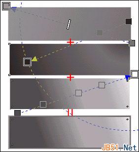 ①、支柱主体由4色的过度形成,注意中间的两个调整色点距离要靠近一些,这样就能较好地形成两个面接合的效果;
