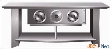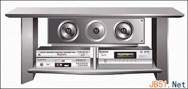 用雷同的过程绘出扩音机和均衡器。三台音响机头组合,DVD机和扩音机两个“矮”的重叠置于左侧,“高个”的均衡器即放在桌子右侧的空间(图)。同样要注意的是桌子隔板与各个机体之间的遮挡关系。