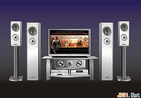 接下来,我们就在两对音箱中间“摆放”一宽屏幕电视。