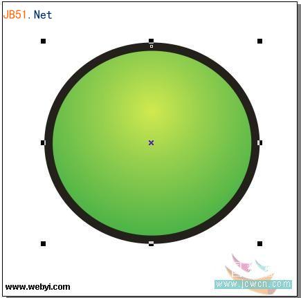 3、接下来为圆形填充颜色并设置其轮廓粗细。保持圆形的选中状态,在工具箱中选择“轮廓工具”,在随后弹出的工具组中选择“16点轮廓(中粗)”,效果如图3所示: