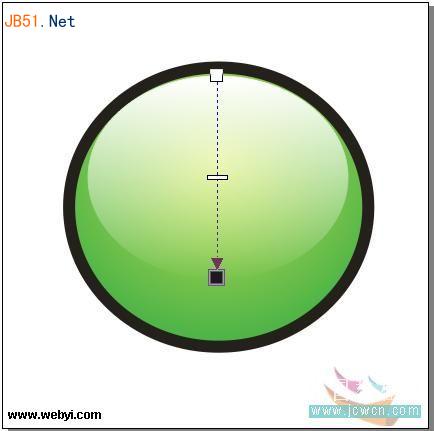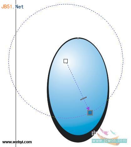 7、在工具箱中选择“交互式透明工具”,从白色椭圆的顶部向下拖动鼠标,到椭圆底部的时候释放鼠标,得到如图8A所示的透明效果。