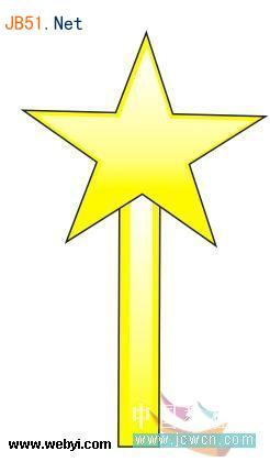 18、下面绘制小精灵手中的魔棒。选择“星形工具”,在属性栏中设置星形边数:5;尖角为20,然后绘制一个星形,并设置其填充颜色为黄色(Y:100),轮廓为2 mm粗细的黑色,如图18所示: