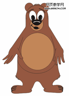 8.最后再把两个圆形放在小熊的头部后边作为耳朵,这样,所有的部分都完成了。一些基本形状加上贝兹曲线就可以完成所有的工作。
