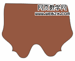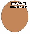 1.首先,在CorelDRAW中打开一张新图像。选择椭圆工具,在画布上画一个椭圆。在默认情况下,轮廓线为hairline。在屏幕右边的颜色面板中,选择一种红棕色,填充到椭圆。从安排菜单下选择“转化为曲线”命令,将椭圆转化为曲线造型。右键点击曲线最下方和最左边的节点,从弹出菜单中选择添加节点。在工具箱中选择造型工具,用它调节节点,将曲线改变成类似于下图的样子。
