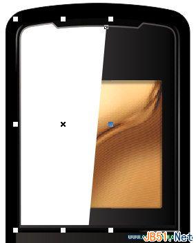 9.按下Ctrl+X键将该模糊轮廓图形进行剪切,然后按住Ctrl键单击图框剪裁对象,按下Ctrl+V键将模糊对象复制进来,位置如图所示,做出屏幕阴影效果。