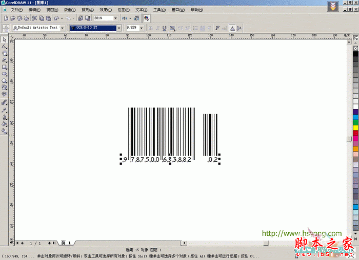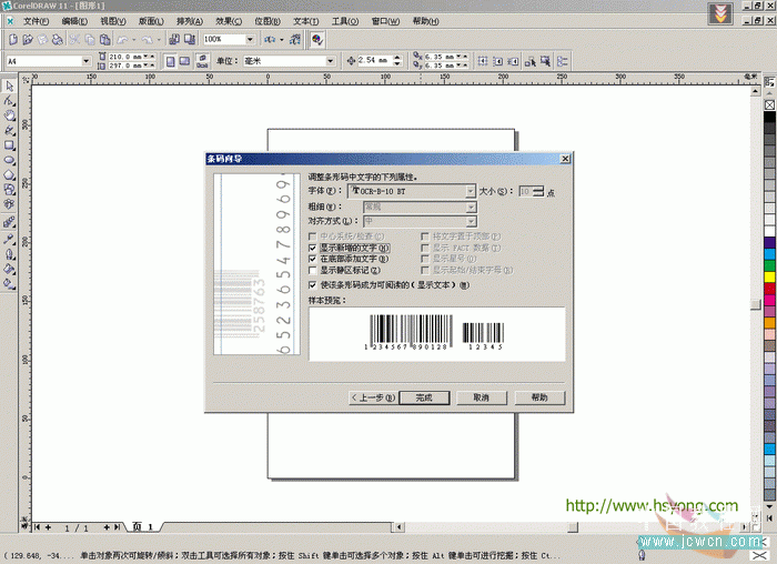 11.选择条形码数字,现在可以修改字体属性了,变更字体为OCR-B-10 BT。