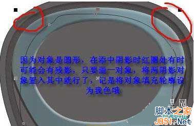 由于对象是似圆形,所以加阴影时左右上角有可能会出现不应有的阴影,我们用CTRL+C再原地复制一个,再画一个对象将添加了阴影的两对象置于该对象中以隐藏不应有的阴影;