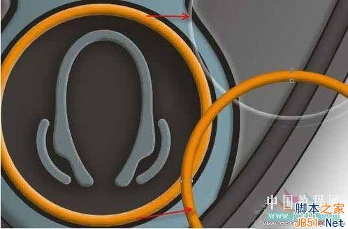 最外第二个对象是做车线槽,那么是凹下去的,为了表现出凹的感觉我们只要在间中产生点内阴影就形了,在CD中表现内阴影的方法如下: