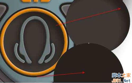 再将凹槽对象原地复制一个并置入中间凸出对象中添加黑色阴影做出暗光部;