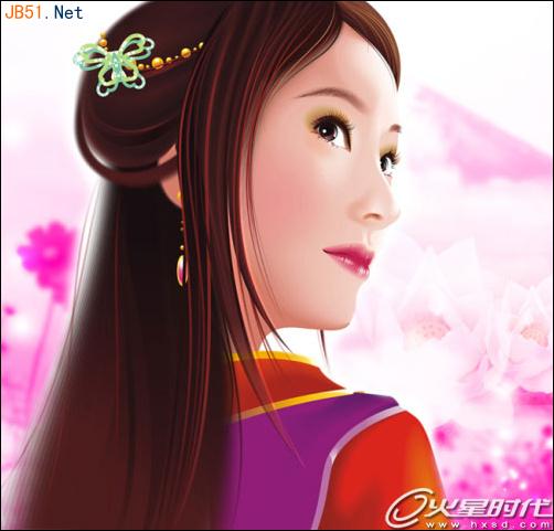 最后,分别创建调和后的发束边缘就有了虚化的效果。