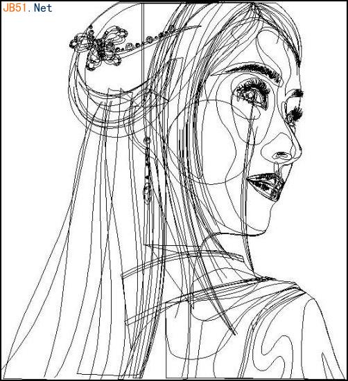 (6)用同样的方法处理其它发丝。注意添加透明时要曲线两端透明。
