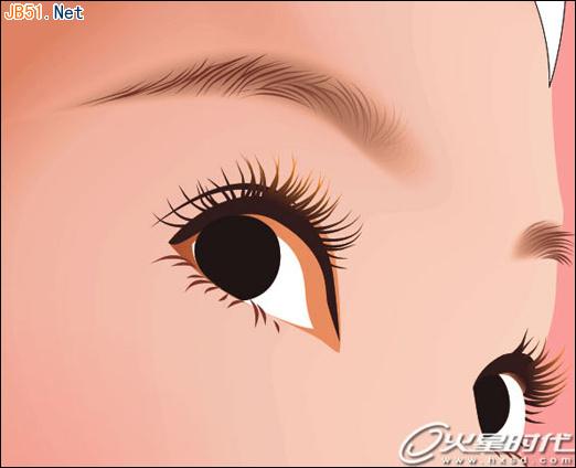 (7)选择转化成画笔的曲线,将其拆分并填充渐变。用同样的方法处理下眼睫毛。